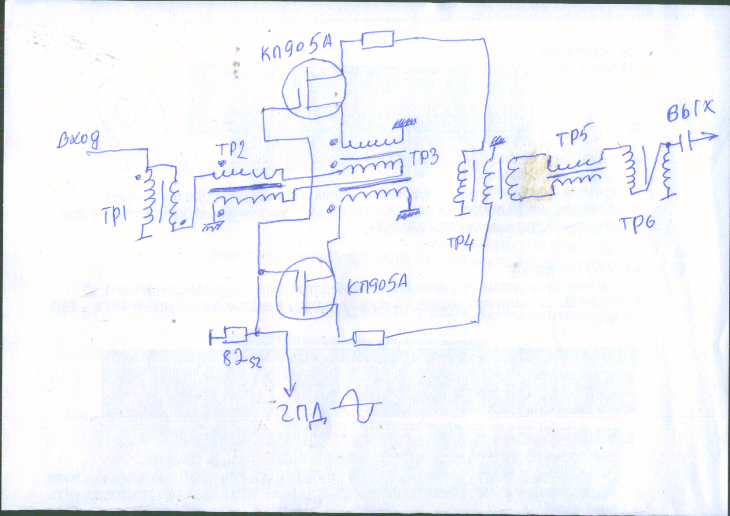 Ну и обычно, при использовании КП 905 в цепь затворов подаётся положительное смещение. При 0 напряжении на затворе транзистор обычно полностью заперт, и начинает отпираться иногда при довольно большом напряжении. При подаче на затворы синусоиды, очень желательно предусмотреть и положительное смещение, и возможность балансировки, когда момент открытия ключей для каждого из транзисторов подбирается индивидуально...