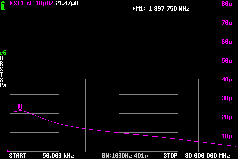 Если с 10 витками индуктивность ниже 5 мкГн, для точности можно подняться и на 1 МГц.