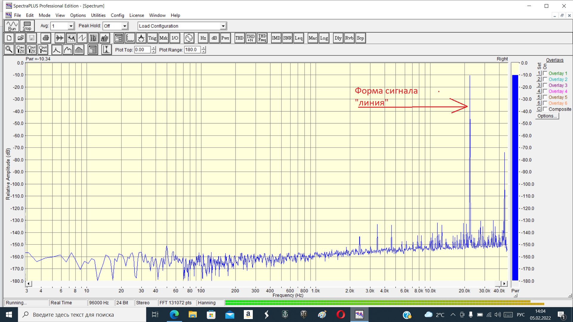 Если Вам удобнее Спектраплюс, то выберите в утилитах функцию сигнал генератор и с выхода карты подайте на вход. Кабель три провода -экран и два провода с балансного выхода на балансный вход карты. Например с выхода 2-го канала на вход 1-го канала.