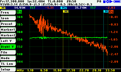 Ну, а теперь по поводу предложенного мною.  1yep 1999 Положим последовательный резистор 156 Ом (под рукой такой валялся - обычный выводной, даже не СМД) - см. картинку - реактивность совсем мала, на неё, как я и писал ранее, на КВ  смело можно забить.  pl33